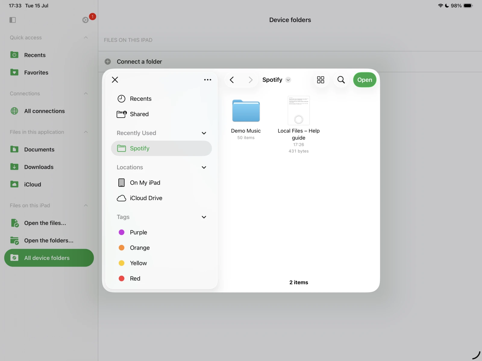 - Al selector de fitxers, tria la carpeta de Spotify i toca Obrir