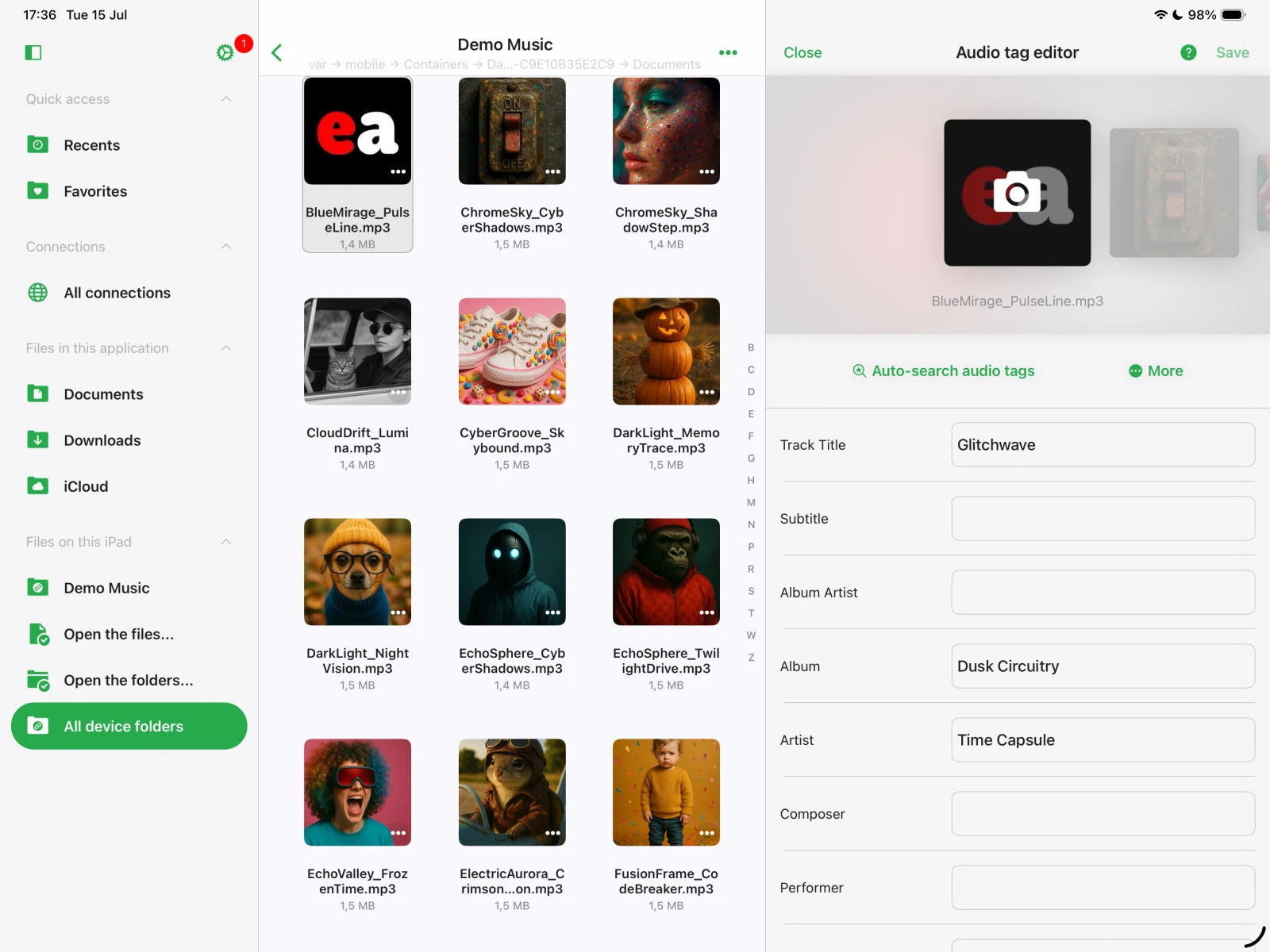 Ara que els teus fitxers s’han copiat a la carpeta local de Spotify, potser voldràs netejar les seves metadades i afegir portades d’àlbums adequades. Per fer-ho, utilitza l’aplicació Evertag — disponible a iPhone, iPad i Mac.