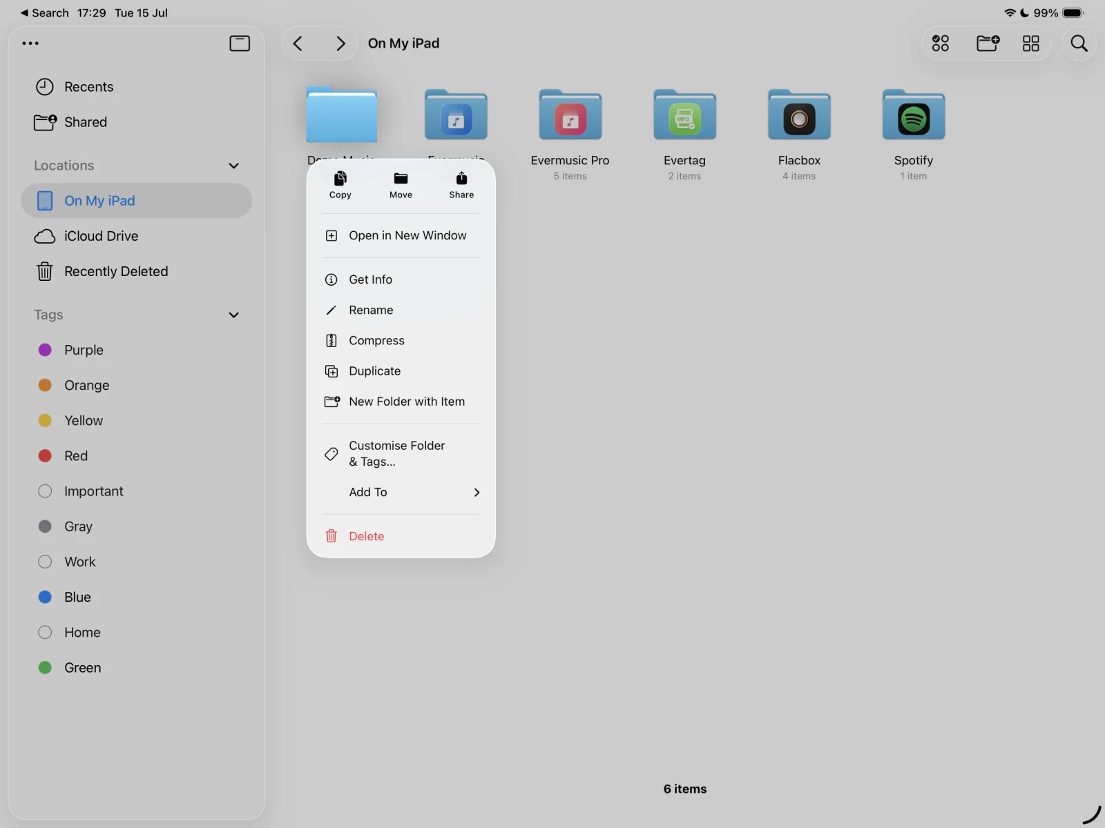 Navega a la teva carpeta de Música. Toca i mantén premut per obrir el menú contextual i tria Copiar.