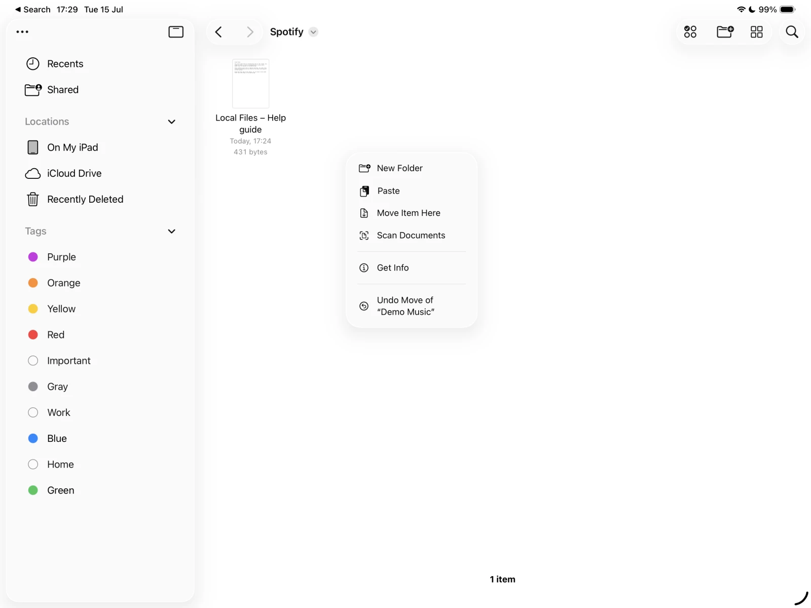 Navega a la carpeta Spotify, toca i mantén premut en una àrea buida i tria Enganxar del menú contextual.