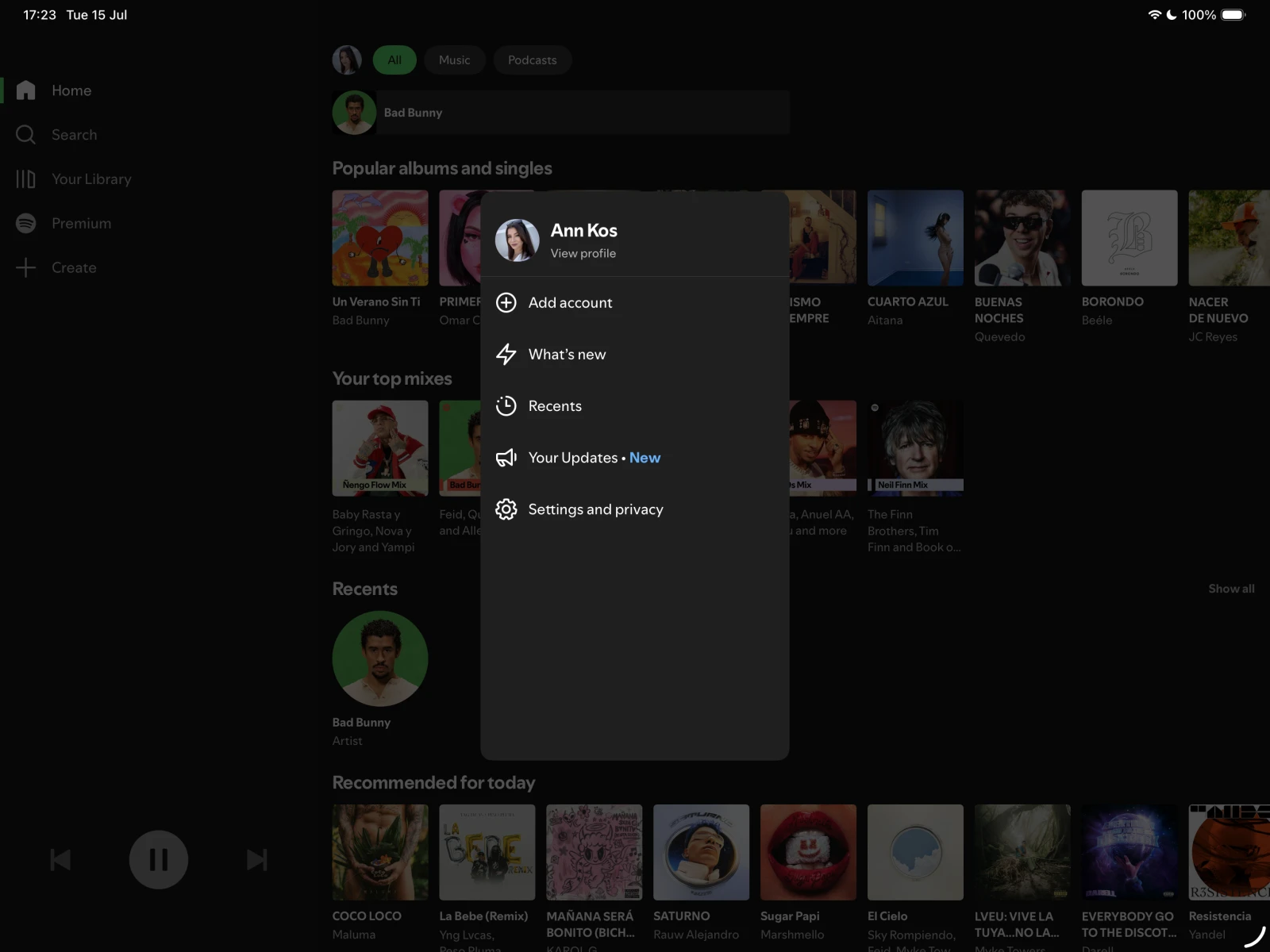 Busca a la cantonada superior esquerra de la pantalla d’inici de Spotify i toca la teva foto de perfil per obrir el menú.