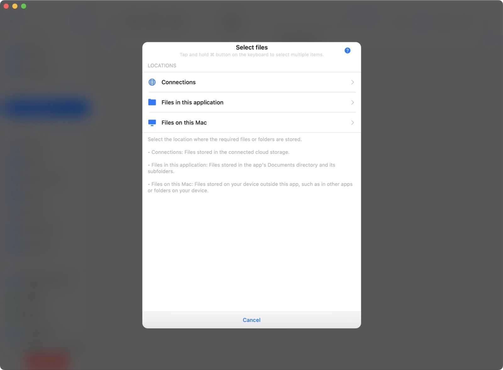 Vælg Files on this Mac (eller en anden placering, hvor du gemte filen).