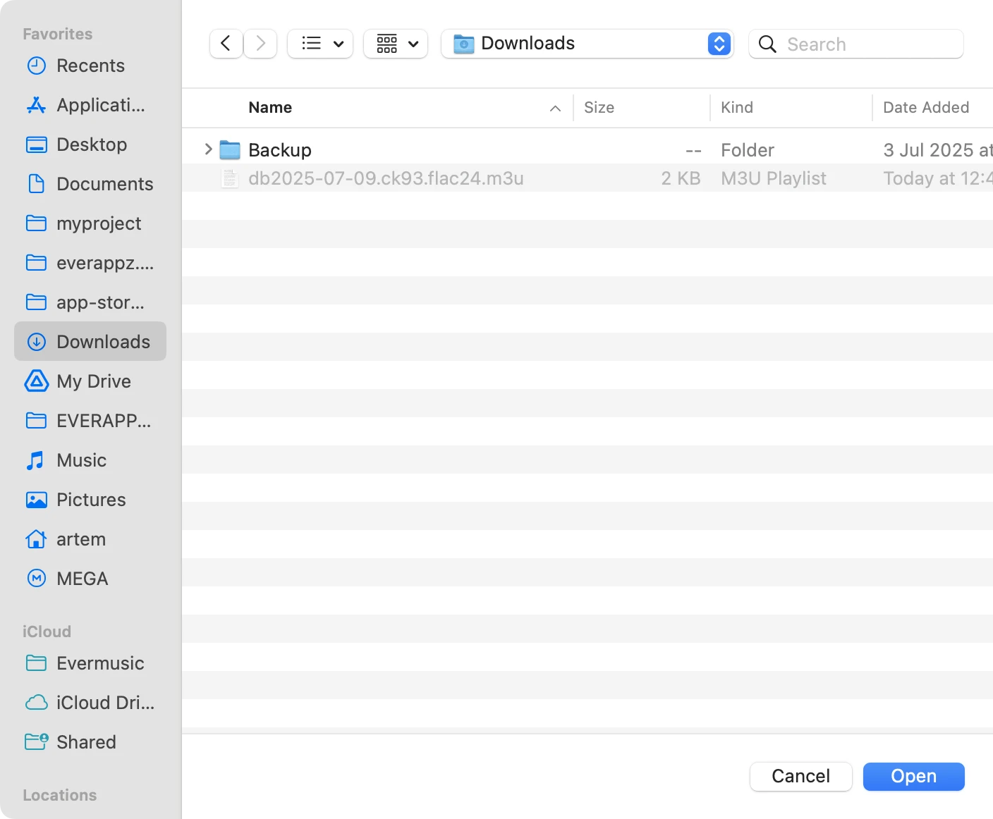 For at afspille den downloadede .m3u-fil på din Apple-enhed skal du bruge appen Evermusic (gratis download):