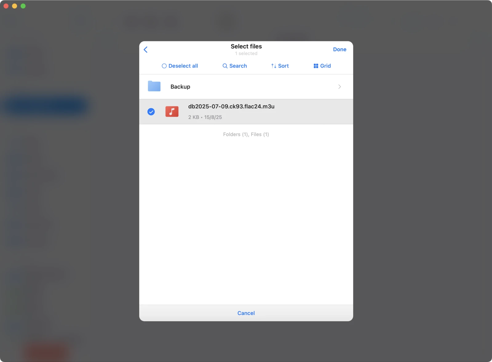 Når mappen er tilsluttet, find og vælg din .m3u-fil.