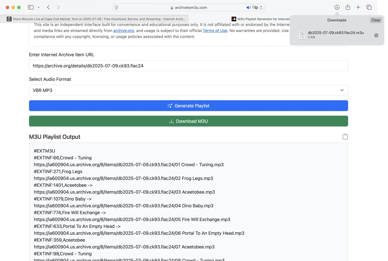 I denne trin-for-trin guide lærer du, hvordan du genererer og downloader M3U-afspilningslister fra Internet Archive-elementer — herunder Live Music Archive — ved hjælp af et simpelt browserbaseret værktøj.