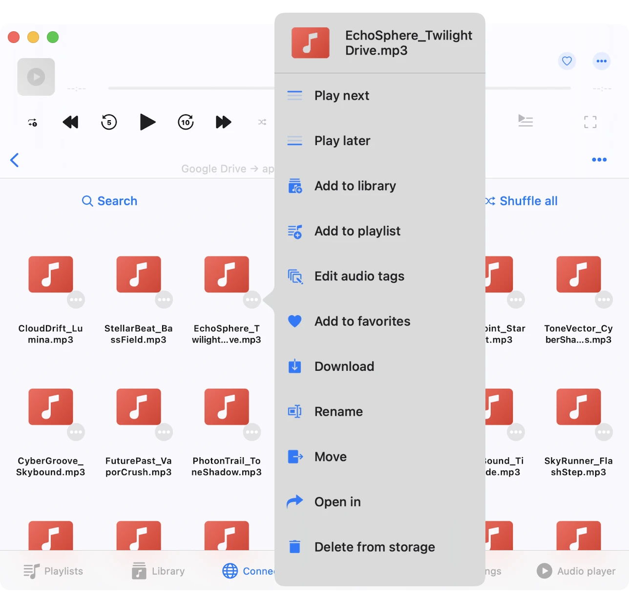 In this tutorial, we will learn how to edit your audio tags on iPhone or Mac using the built-in tag editor in the Evermusic or Flacbox app. Evermusic and Flacbox allow you to connect to your cloud storage services like Dropbox, Google Drive, OneDrive, and even your home computer, TimeCapsule, or NAS. With the ability to download songs, albums, and artists for offline playback at your convenience, your music is always at your fingertips.
