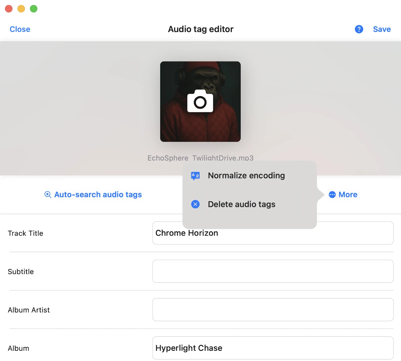 This action will normalize the text encoding of all tags in the audio file’s metadata. It’s especially helpful if you’re switching from a Windows PC, where files may use different encodings that appear as unreadable or garbled characters on a Mac.
