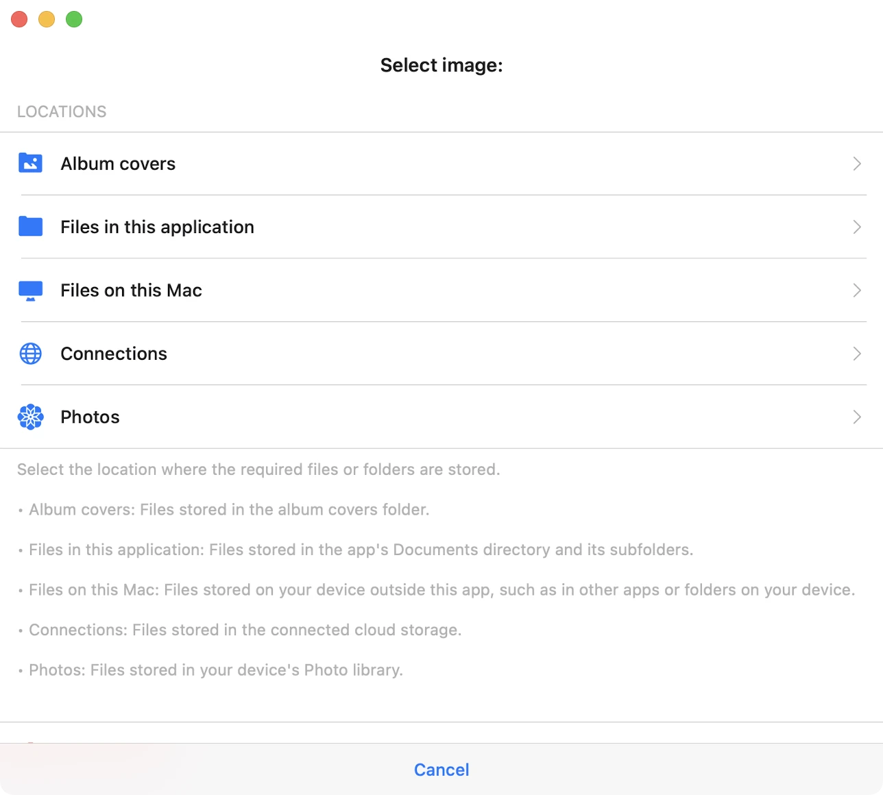 - Choose the image location: Local Files, Cloud, Downloads, or Photo Library.