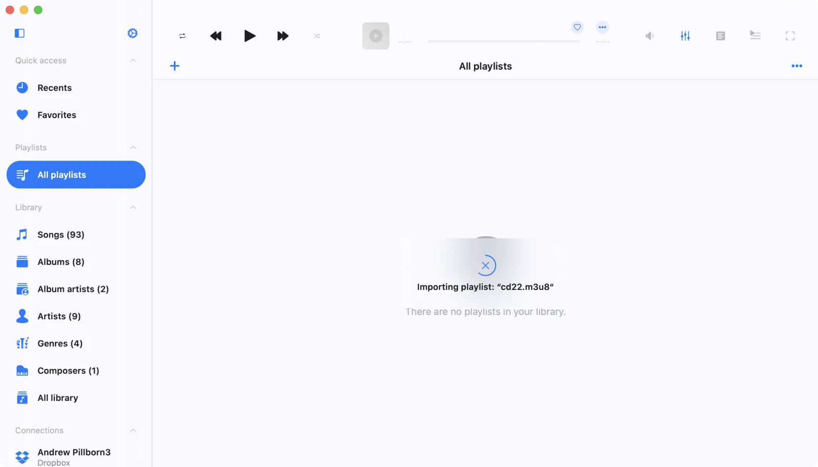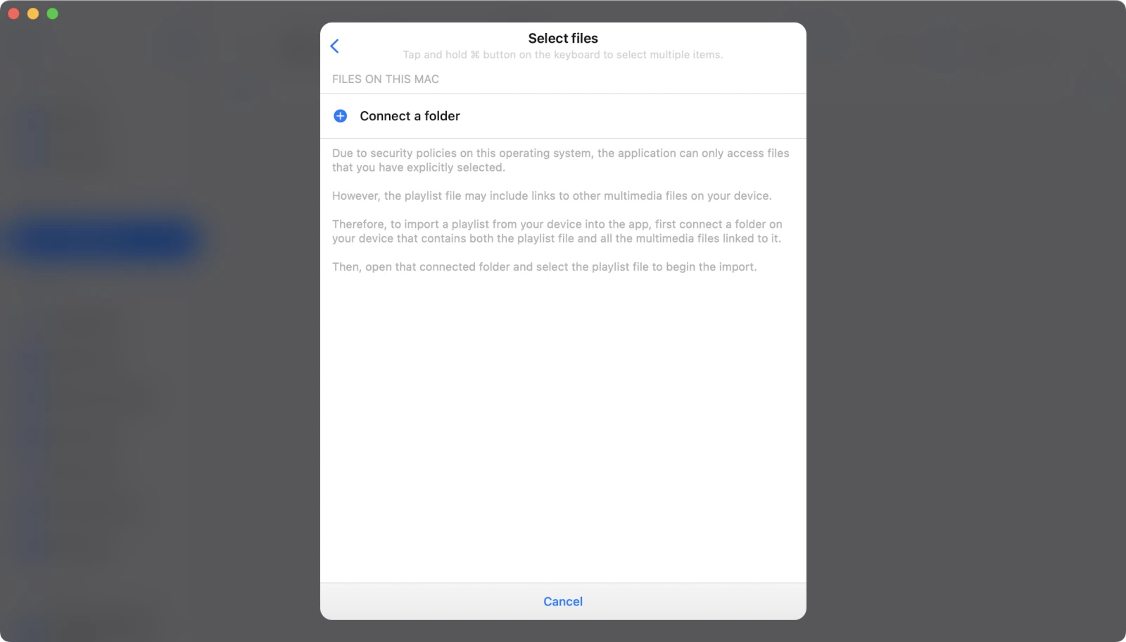 Because the apps run in sandbox mode on macOS, both the playlist file and the media files must be in the same folder for successful import.