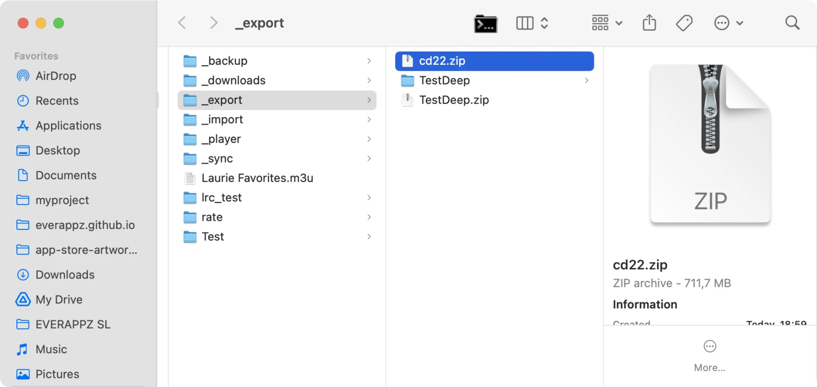 The app will then open the Export folder, where all created archives are stored.