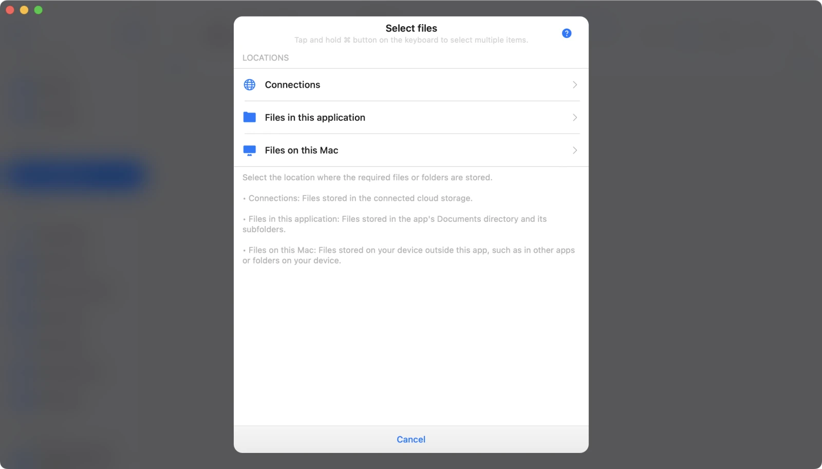 Next, choose Files on this Mac to import files stored locally.