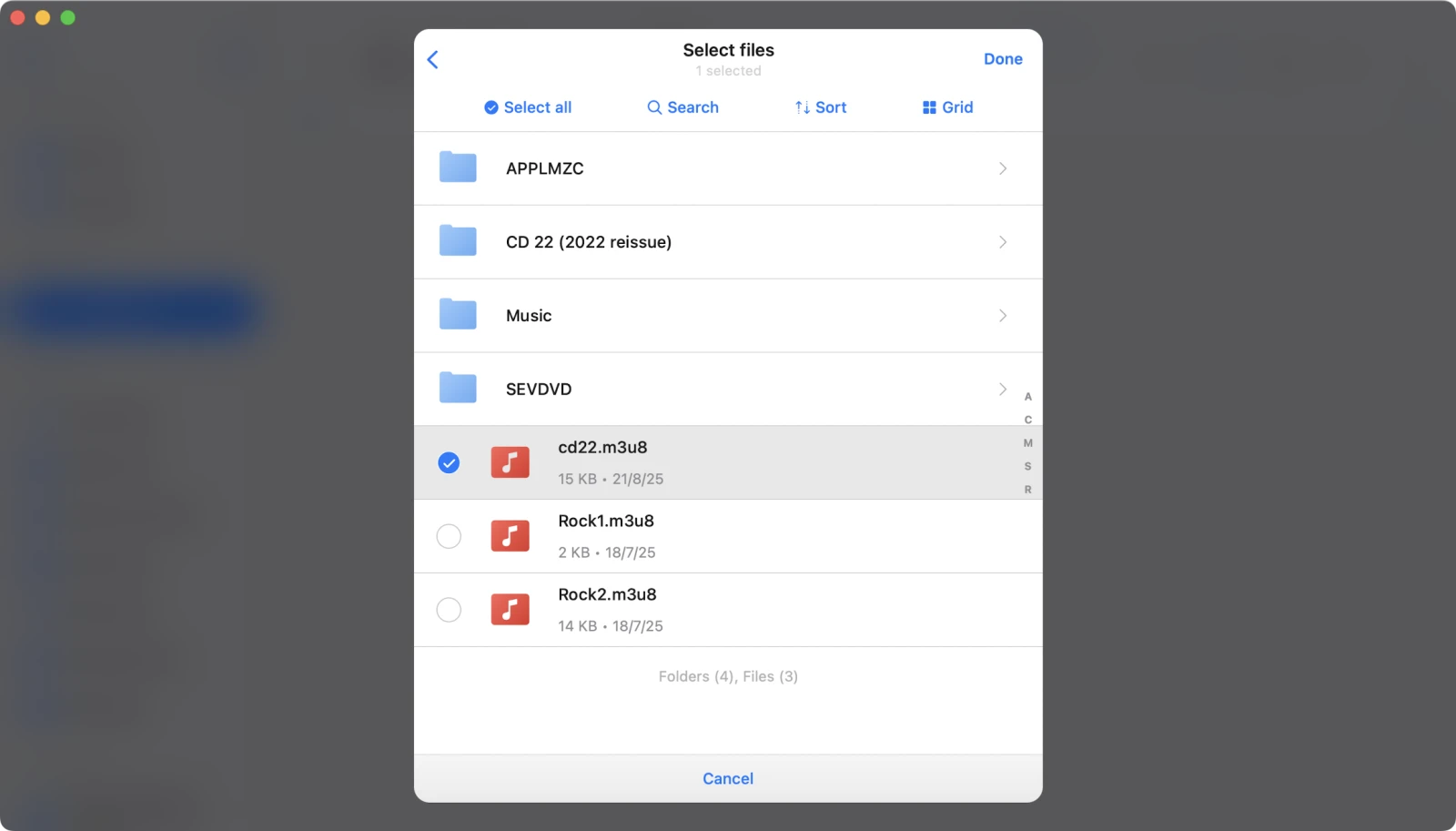 Once connected, open the folder and select your exported M3U file.